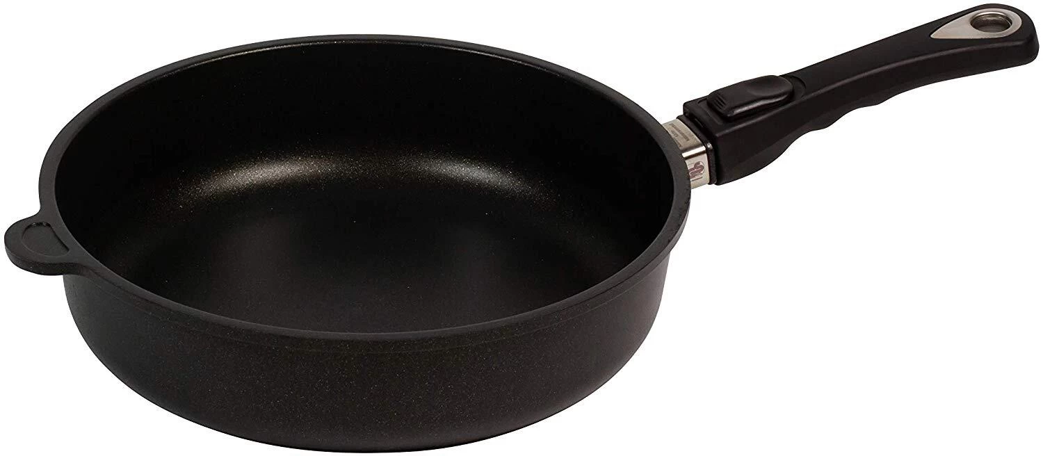 AMT Schmorpfanne mit abnehmbaren Stiel. Bratpfanne mit abnehmbaren Stiel zum besonders platzsparendem Aufbewahren.