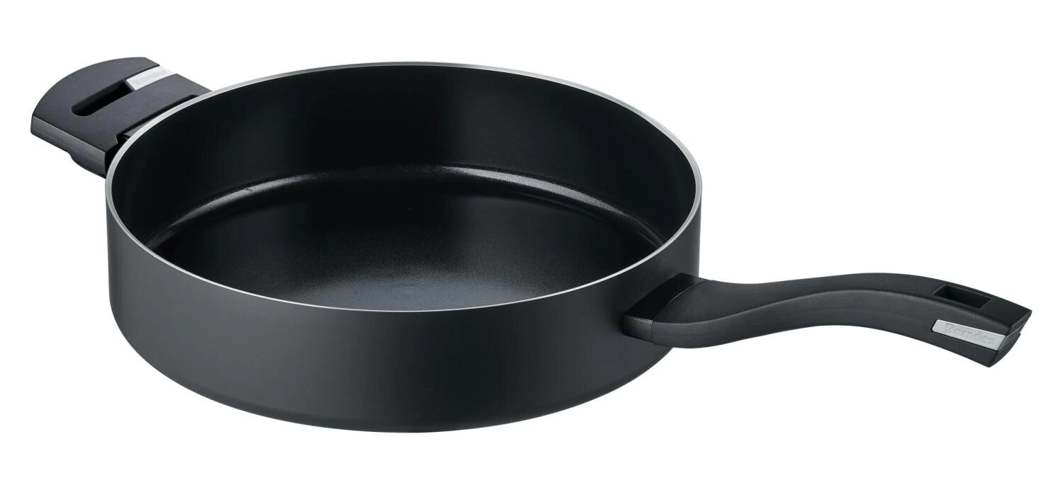 Die Schmorpfanne hat im Vergleich zur Bratpfanne einen deutlich höheren und geraderen Rand sowie ein größeres Volumen. Das ist vor allem von Vorteil für Gerichte, bei denen Flüssigkeit hinzugefügt wird, wie z.B. bei Gulasch, Ragouts.