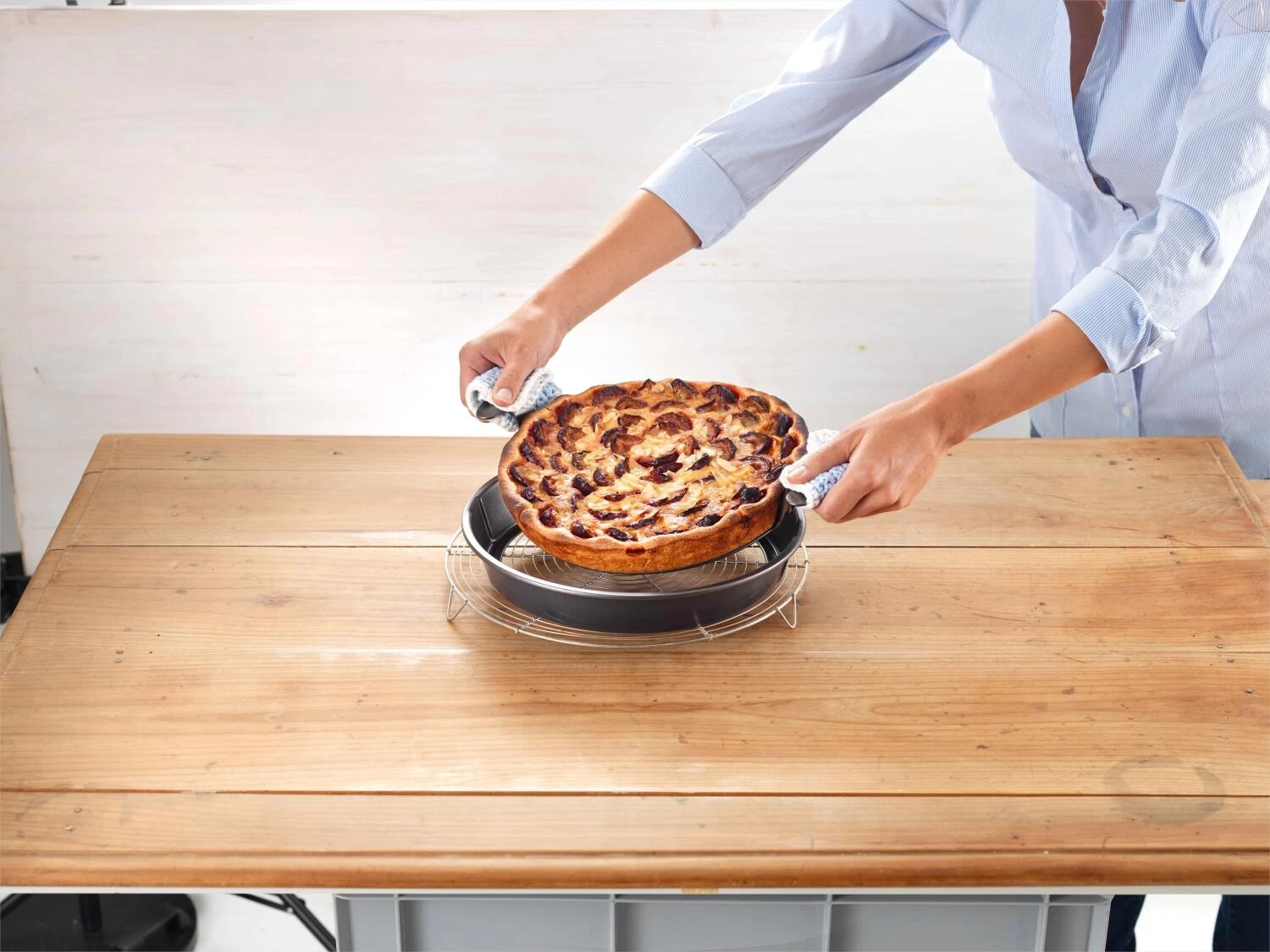 Backform ist aus hochwertigem, antihaftbeschichtetem Material gefertigt. Sie erhalten so eine Wähe, also einen Kuchen mit süßem oder salzigen Belag, die sich mühelos vom Boden löst und einen extra knusprigem Rand bekommt.