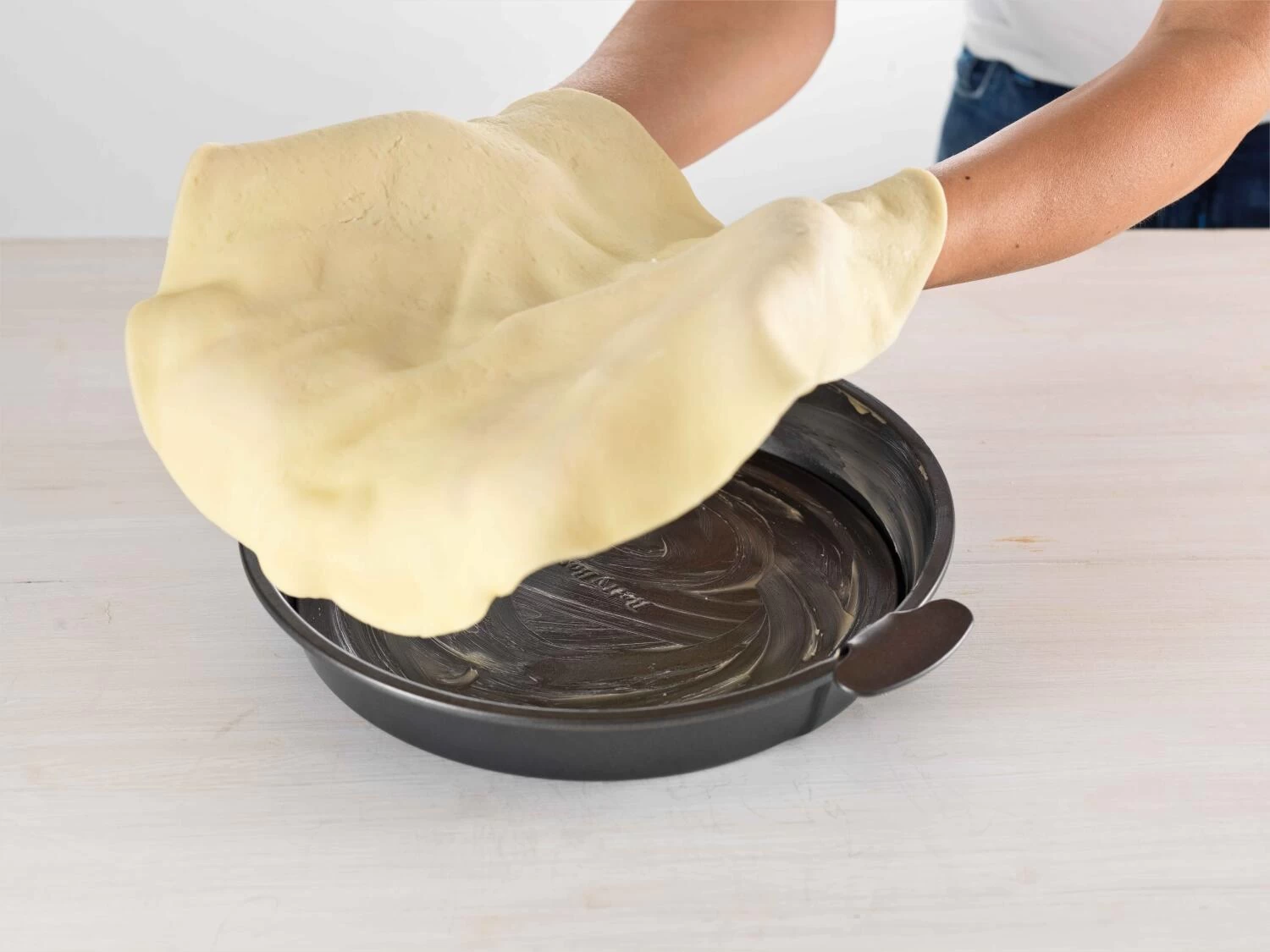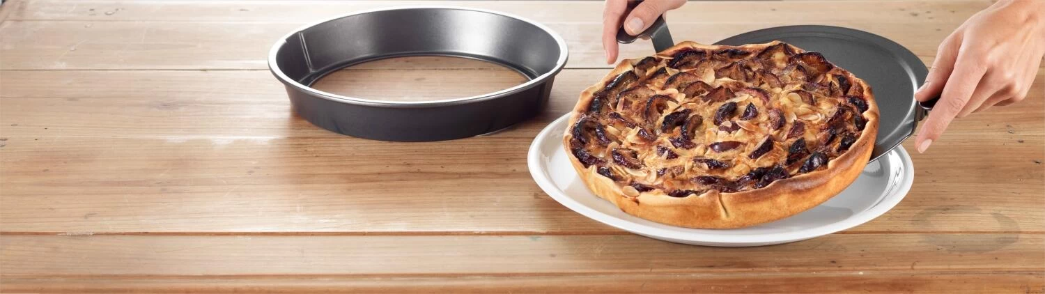 Die Backform ist perfekt ausgerichtet für Fertigteig. Die Form, bestehend aus zwei Teilen, dem Rand und einem Boden mit zwei Griffen, ermöglicht ein ganz leichtes Herauslösen Ihres Kuchens oder Ihrer Quiche – ganz ohne Zerbrechen.