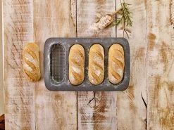 Auf dem Backblech von Birkmann können bis zu vier knusprige Mini-Baguettes gebacken werden. Das Backblech ist perforiert und antihaftbeschichtet.