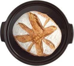 Emile Henry Brotbackform Set in fusain. Die runde Form der Brotbackhaube hat genau den gleichen Effekt wie die Wölbung traditioneller Brotbacköfen, damit das Brot beim Backen den richtigen Feuchtigkeitsgrad bekommt.