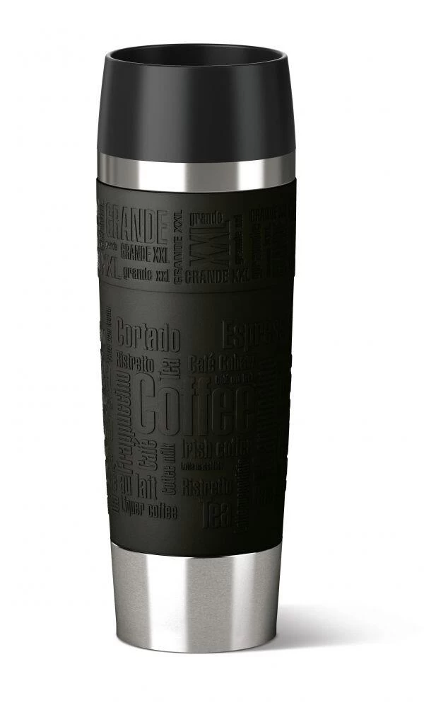 Emsa Isolier-Trinkbecher Travel Mug Grande in schwarz. Der perfekte Isolierbecher für den großen Kaffeegenuss unterwegs mit 0,5 Liter Fassungsvermögen. Mit Edelstahlkörper und praktischer Rundum-Trinköffnung.