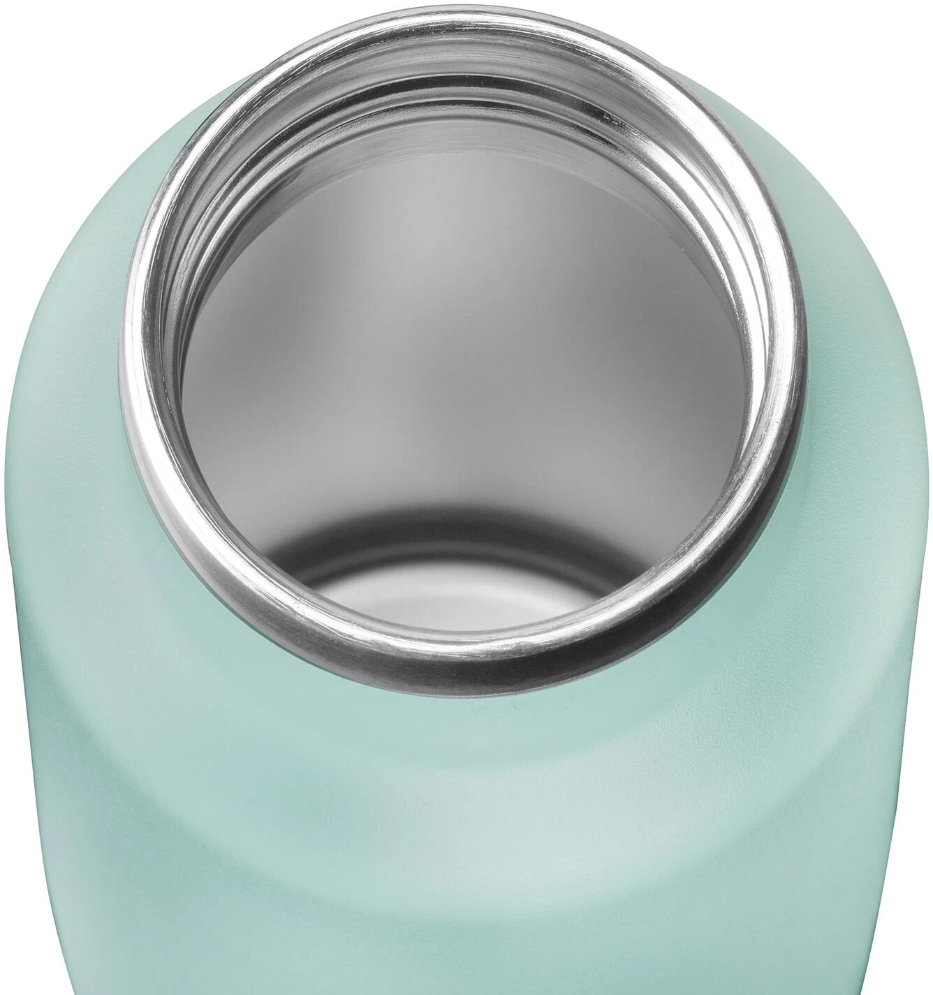 Schön auch, dass dank des doppelwandigen Aufbaus heiße Getränke wie Kaffee oder Tee besonders lange warmgehalten werden – oder kalte Getränke lange kühl. Der praktische Loop-Verschluss ermöglicht das komfortablen Tragen sowie das leichte Öffnen und wieder Verschließen. Die Trinkflasche ist zu 100% auslaufsicher. Durch ihre hochwertige Pulverbeschichtung liegt die Flasche gut in der Hand.
