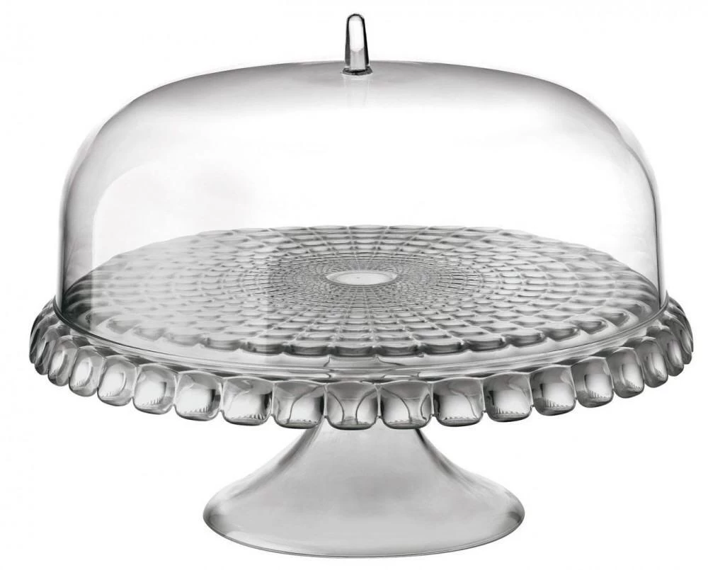 Guzzini Tortenplatte Tiffany mit Fuß und Haube in grau. Hergestellt aus Acrylglas.