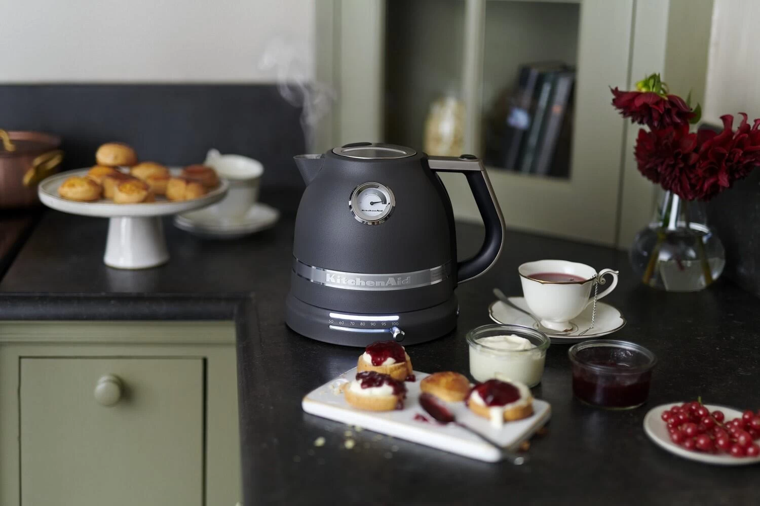 KitchenAid ARTISAN Wasserkocher in imperial grey. Doppelwandiger Wasserkocher im hochwertigen Design mit mit 1,5 L Fassungsvermögen und Temperaturregelung von 50 °C bis 100 °C.