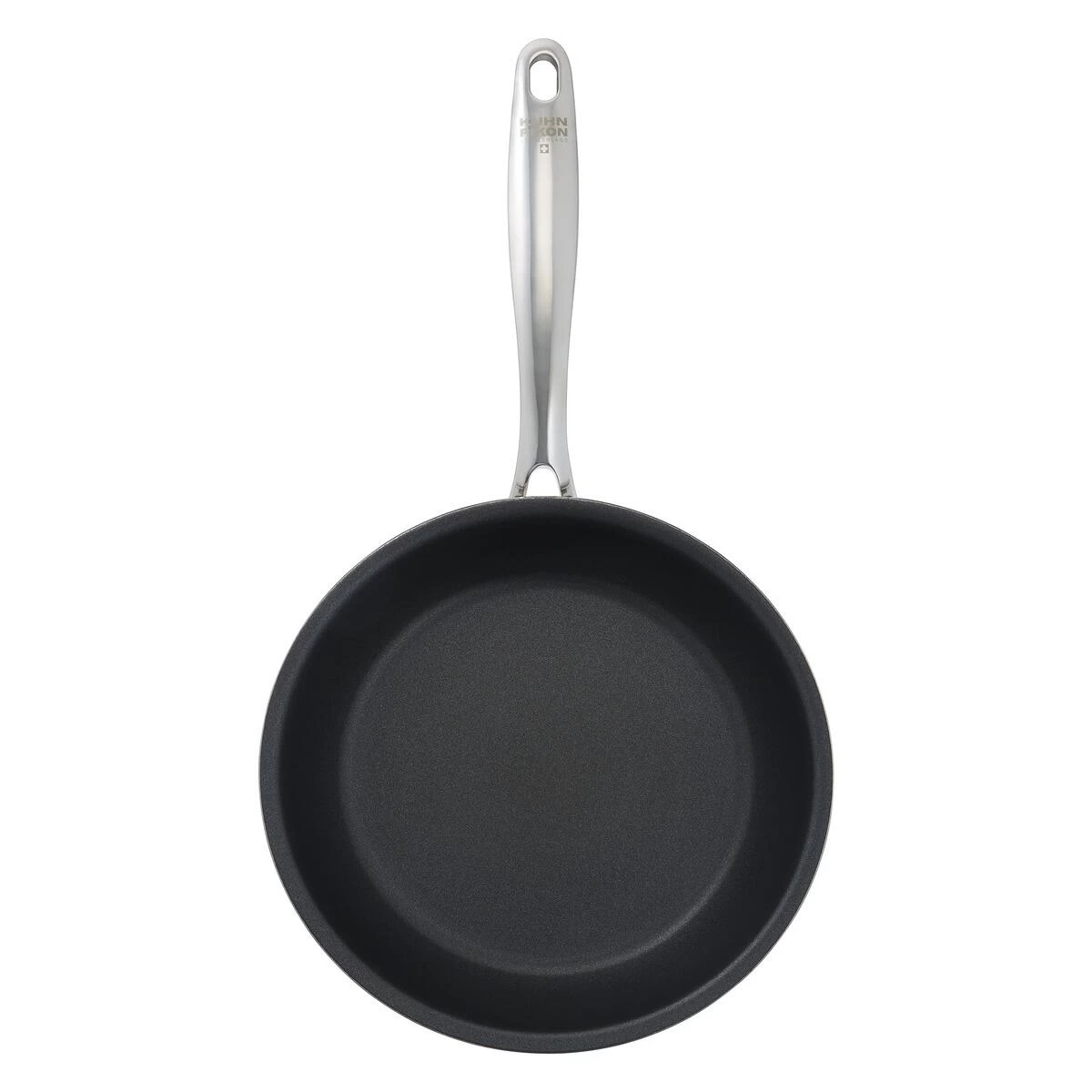 Kuhn Rikon Bratpfanne Swiss Multiply, beschichtet. Die in der Schweiz entwickelte und hergestellte, beschichtete Mehrschicht Bratpfanne (Edelstahl/Aluminium/Edelstahl) eignet sich ideal für schonendes Anbraten von Gemüse, Fleisch (Rind, Schwein, Kalb, Huhn, Geschnetzeltes, Gehacktes), Eierspeisen und Kartoffeln aller Art und für jede Küche.