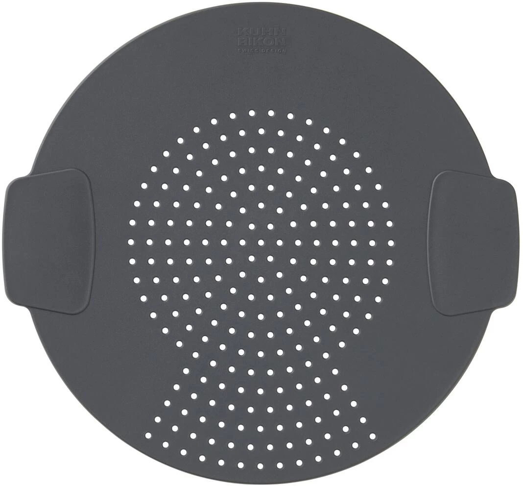 2-in-1: Mit diesem ausgeklügelten Produkt der Smart & Compact Linie von Kuhn Rikon giessen Sie nicht nur die Flüssigkeit bequem ab, indem Sie es als Abgiesshilfe auf den Kochtopf legen, sondern verhindern als Spritzschutz auch gleichzeitig Fettspritzer in Ihrer Kochumgebung. Sie ersetzen damit das herkömmliche Abtropfsieb und erhalten gleich noch einen Spritzschutz dazu. Durch die flache Form sparen Sie wertvollem Stauraum ein.