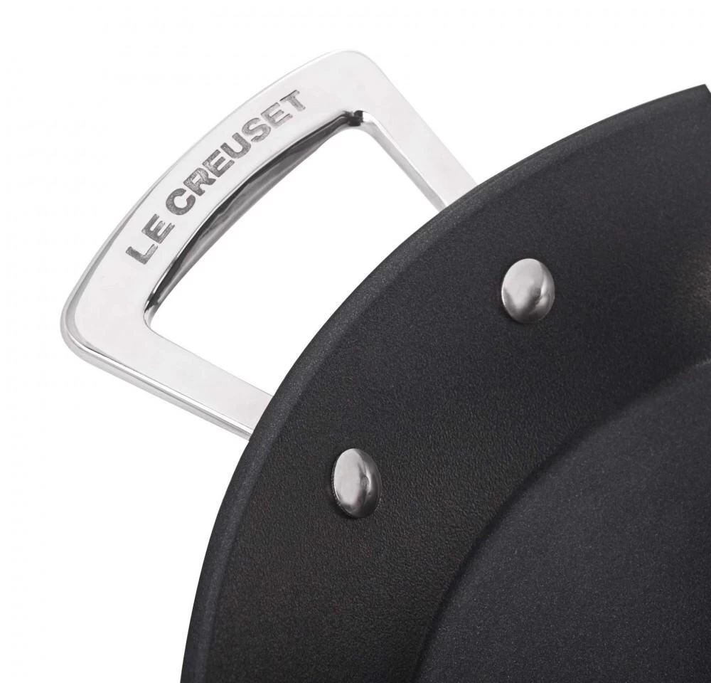Le Creuset bietet mit dieser Aluminium-Antihaft-Serie ein vielfältiges Sortiment, aus dem jeder – vom Hobby- bis zum Profikoch – die passende Form findet. Die Pfanne verteilt die Wärme gleichmäßig und effizient, sodass keine heißen Stellen in der Form entstehen. Der eloxierte und beschichtete Aluminium-Pfannenkörper gepaart mit einem ansprechenden Design ergeben eine ideale Kombination für das tägliche Kochen.