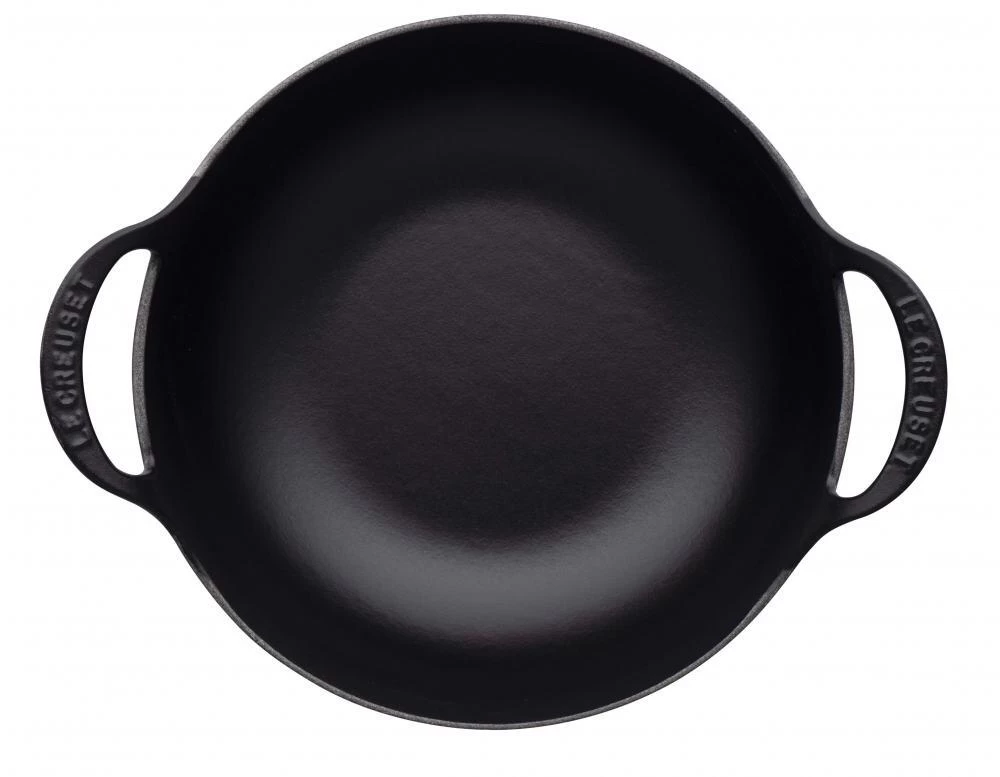 Le Creuset Balti Dish in ofenrot. Kochtopf aus Gusseisen mit zwei Griffen und 24 cm Durchmesser.