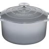 Der Le Creuset Bräter Signature ist ideal für alles, was zunächst scharf angebraten und dann im Backofen geschmort oder überbacken wird. Kurzgebratenes erhält außen die richtige Bräune und bleibt innen saftig. Ansonsten besitzt der Le Creuset Bräter alle Vorzüge, die das Material Gusseisen aufzuweisen hat. Der gusseiserne Bräter zeichnet sich durch eine gleichmäßige Wärmeverteilung und eine hervorragende Wärmespeicherung aus. Einmal erhitzt, bleibt der Bräter lange heiß. Das Bratgut kann selbst bei schwacher Hitze und niedrigem Energieverbrauch aromaschonend gebraten werden. Allerdings kann das Produkt aus Gusseisen ebenfalls sehr hoch erhitzt werden, ohne dass der Bräter einen Qualitätsverlust erleidet. Die spezielle Innenemaillierung sorgt dafür, dass beim Braten nur wenig Fett benötigt wird, scharfes Anbraten auch ohne Ankleben gelingt und die Reinigung erleichtert wird.