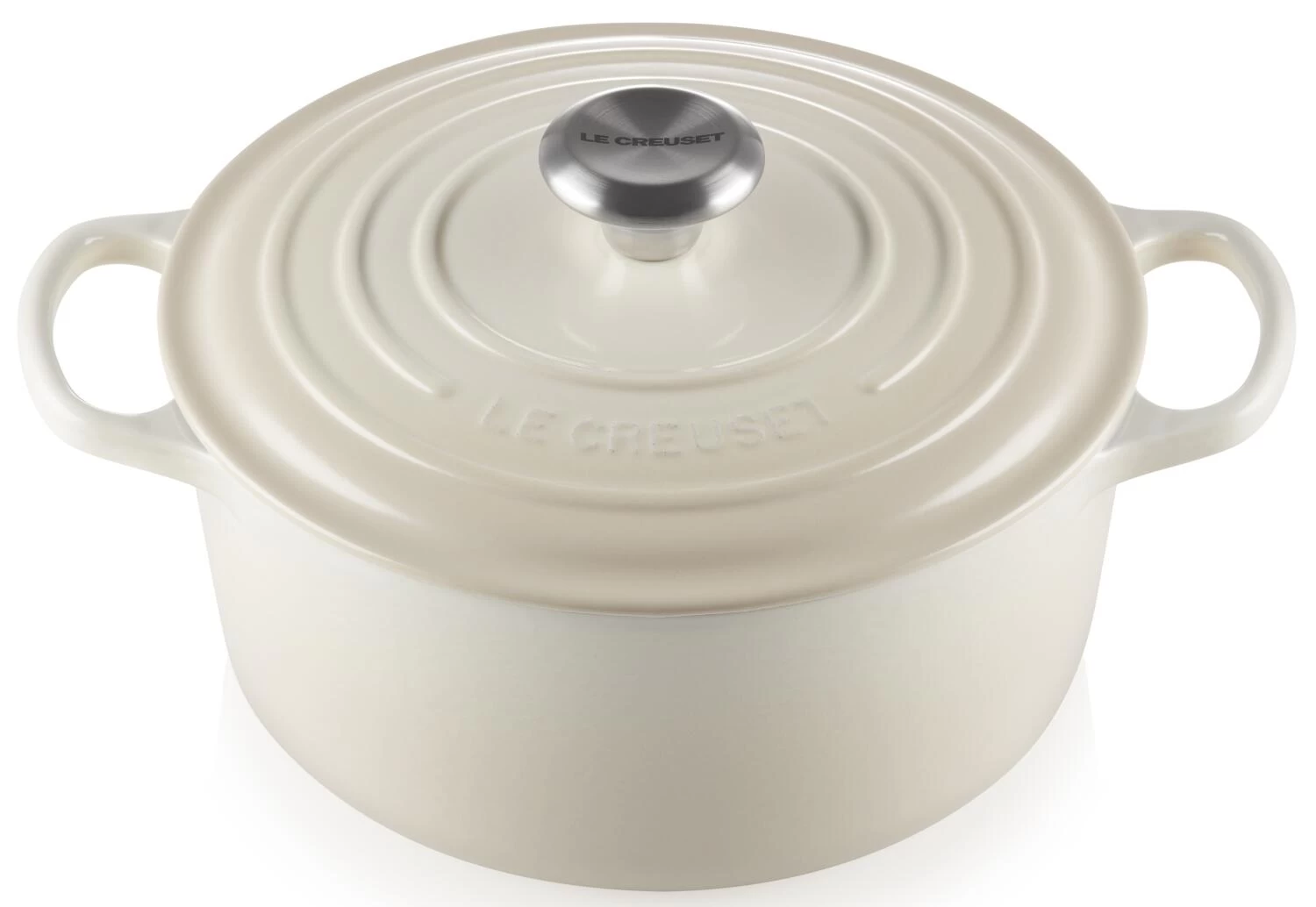 Le Creuset Bräter Signature rund in meringue. Ideal zum Braten, Schmoren und Backen.