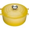 Ansonsten besitzt der Le Creuset Marmite alle Vorzüge, die das Material Gusseisen aufzuweisen hat. Le Creuset Bräter und Le Creuset Töpfe aus Gusseisen zeichnen sich durch eine gleichmäßige Wärmeverteilung und eine hervorragende Wärmespeicherung aus. Einmal erhitzt, bleibt der Bräter lange heiß. Das Bratgut kann selbst bei schwacher Hitze und niedrigem Energieverbrauch aromaschonend gebraten werden. Aber Sie können Gusseisen auch richtig hoch erhitzen, ohne das der Le Creuset Bräter einen Qualitätsverlust erleidet. Dadurch sind Le Creuset Bräter aus Gusseisen ideal zum scharfen Anbraten von Fleisch oder Gemüse und anschließendem Schmoren im Backofen. Kurzgebratenes erhält außen die richtige Bräune und bleibt innen saftig. Die spezielle Innenemaillierung sorgt dafür, dass beim Braten nur wenig Fett benötigt, scharfes Anbraten auch ohne Ankleben gelingt und die Reinigung erleichtert wird.