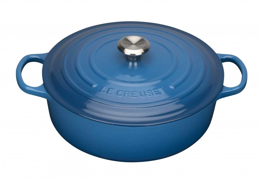 Die neue Serie Signature von Le Creuset kombiniert neue mit bewährten Produkteigenschaften. Die Signature Produkte verfügen über eine speziell entwickelte strapazierfähige Innen-Emaille, die nicht an Glanz und Farbe verliert und zudem eine hohe Widerstandskraft gegen Abnutzung aufweist. Außerdem sorgt die helle und lebendige Farbe der Innen-Emaille für ein schönes Aussehen. Alle Signature Produkte verfügen über große Griffe, wodurch ein leichter, sicherer Transport vom Herd in den Backofen und von der Küche zum Esstisch gewährleistet wird. Der ergonomische Knopf aus gebürstetem Edelstahl besticht nicht nur durch sein formschönes Design, sondern auch durch seine Hitzebeständigkeit bis zu 260 °C. Das moderne, frische Aussehen von Signature wird von einem Deckel mit deutlicher Markenerkennung komplettiert, in dessen Rand Stabilisierer integriert sind, die verhindern, dass der Deckel wackelt. Somit ist für mehr Sicherheit gesorgt.