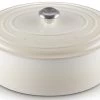 Die neue Serie Signature von Le Creuset kombiniert neue mit bewährten Produkteigenschaften. Die Signature Produkte verfügen über eine speziell entwickelte strapazierfähige Innen-Emaille, die nicht an Glanz und Farbe verliert und zudem eine hohe Widerstandskraft gegen Abnutzung aufweist. Außerdem sorgt die helle und lebendige Farbe der Innen-Emaille für ein schönes Aussehen. Alle Signature Produkte verfügen über große Griffe, wodurch ein leichter, sicherer Transport vom Herd in den Backofen und von der Küche zum Esstisch gewährleistet wird. Der ergonomische Knopf aus gebürstetem Edelstahl besticht nicht nur durch sein formschönes Design, sondern auch durch seine Hitzebeständigkeit bis zu 260 °C. Das moderne, frische Aussehen von Signature wird von einem Deckel mit deutlicher Markenerkennung komplettiert, in dessen Rand Stabilisierer integriert sind, die verhindern, dass der Deckel wackelt. Somit ist für mehr Sicherheit gesorgt.