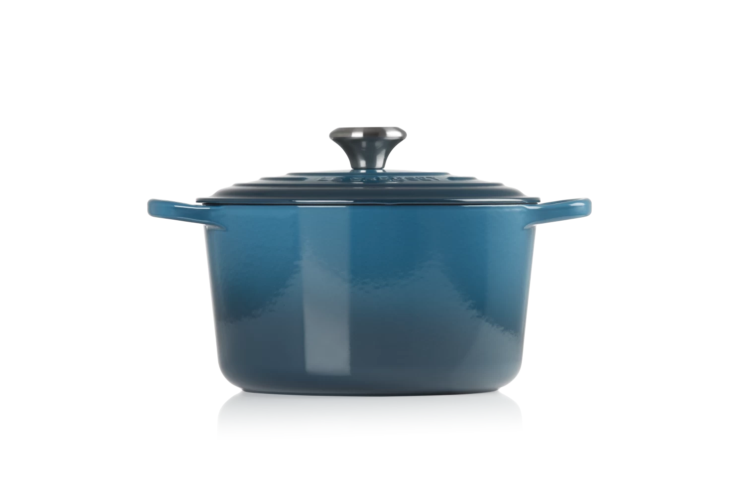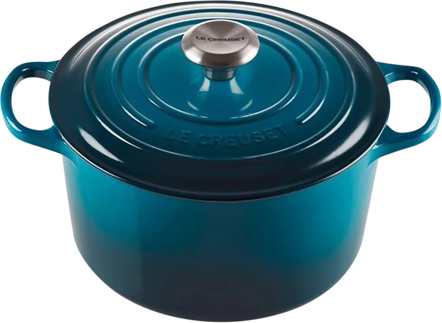 Le Creuset hoher Bräter Signature rund in deep teal. Ideal zum Braten, Schmoren und Backen.