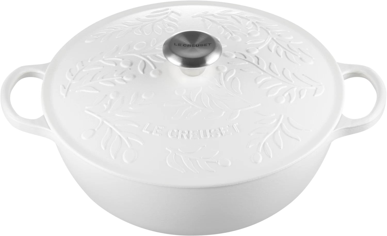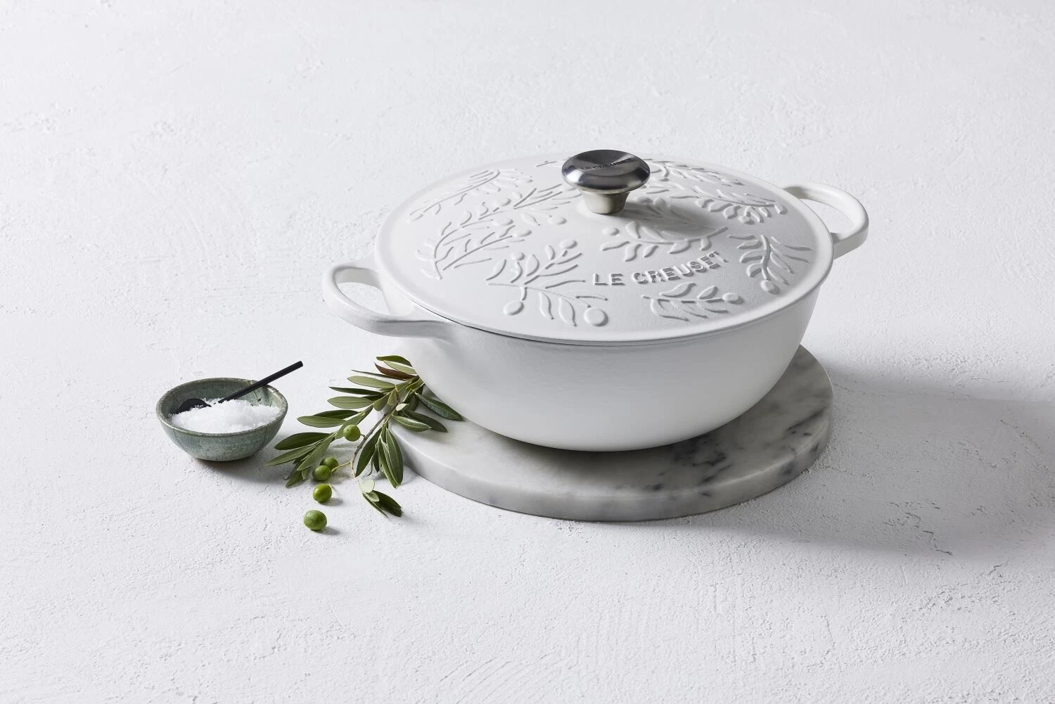 Die exklusive Kollektion Olive Branch von Le Creuset veredelt den Topf mit feinen Verzierungen und einem warmen hellen Farbton!