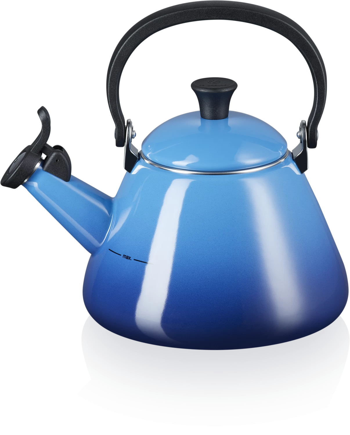 Wasserkessel Kone in azure. Machen Sie Ihr tägliches Kaffee- oder Tee-Ritual mit diesem Wasserkessel zu etwas ganz Besonderem. Er ist aus emailliertem Karbonstahl gefertigt und setzt einen farblichen Akzent in Ihrem Zuhause.