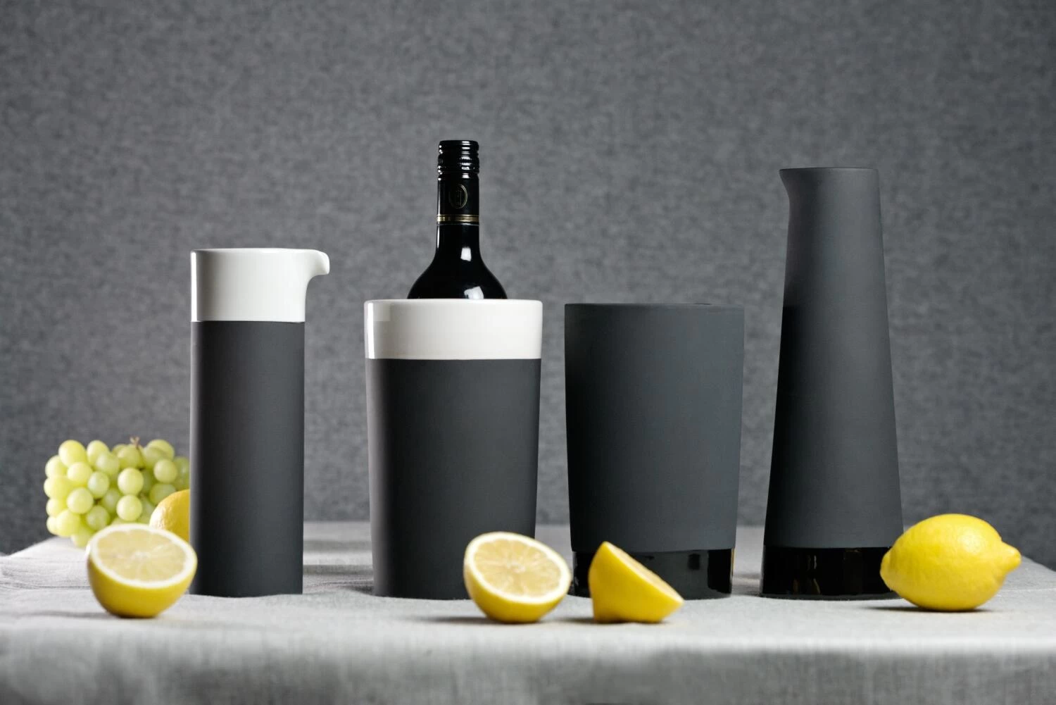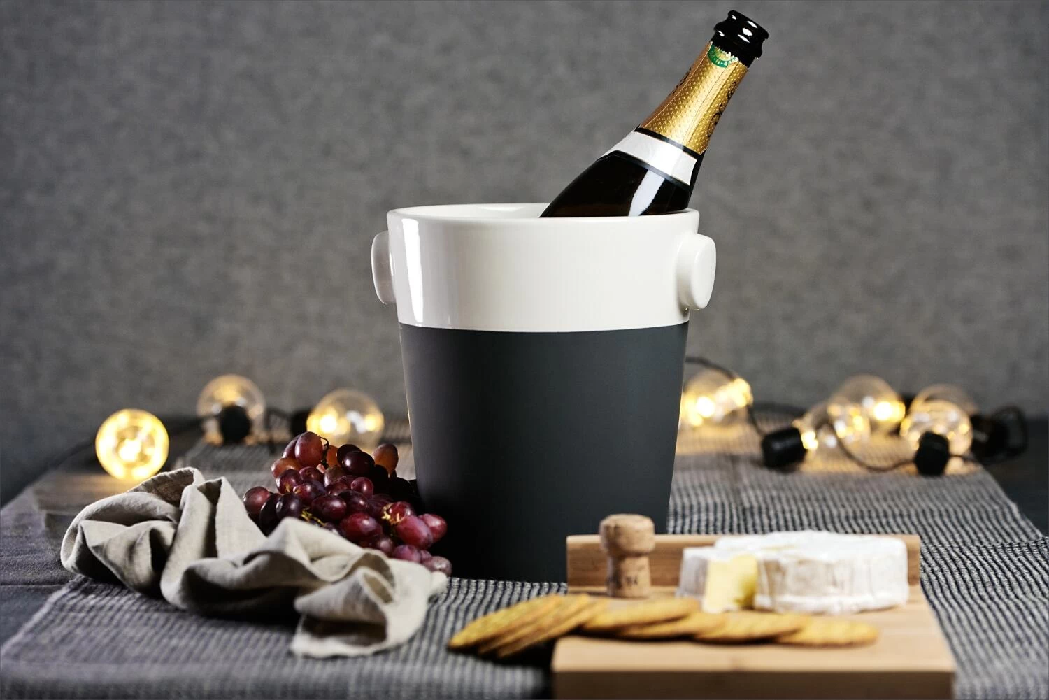 Magisso Champagnerkühler. Die spezielle Keramik sorgt für eine natürliche Kühlung. Die Außenseite können Sie als Kreidetafel für kleine Botschaften nutzen.