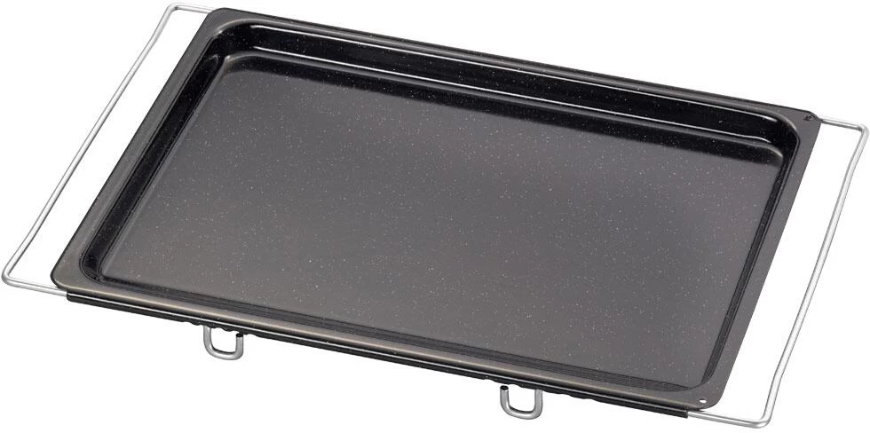 Riess Backblech Multiflex aus Emaille in schwarz. Backblech mit variabel einstellbarer Breite von 41 bis 51 cm.