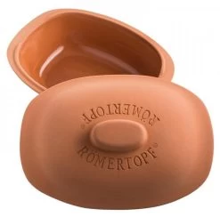 Durch die poröse Innenglasur im Unterteil lässt sich der Römertopf besonders gut reinigen und ist sogar für die Spülmaschine geeignet. Mit Gebrauchsanweisung.