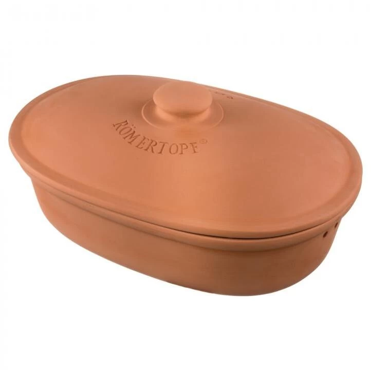 Römertopf Brot-Frischetopf oval MAXI, terrakotta. Zum natürlich frischen Aufbewahren von Brot. Das Brot bleibt frisch auf natürliche Art. Atmungsaktiver Naturton und 3 Löcher an jeder Seite sorgen für die notwendige Luftzirkulation.