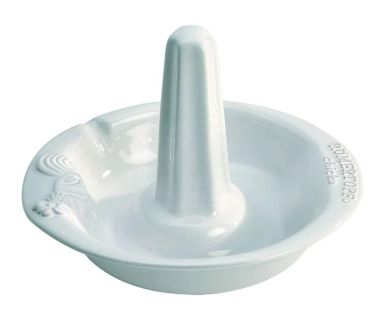 Römertopf Hähnchenbräter Chicko ist für das knusprige Braten von Hähnchen, Poularden und kleinen Enten geeignet. Das Fleisch zart und saftig, die Haut knusprig braun – so schmeckt ein Hähnchen richtig gut. Chicko, der Hähnchenbräter von RÖMERTOPF. Brathähnchen im Ofen garantiert kross, besonders fettarm und dabei zeitsparend zubereitet.