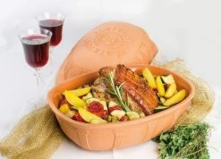 Durch die poröse Innenglasur im Unterteil lässt sich der Römertopf besonders gut reinigen und ist sogar für die Spülmaschine geeignet. Mit Gebrauchsanweisung.