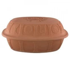 Römertopf Jubiläums-Bräter mittel. Das Modell für den Haushalt von 4-6 Personen bzw. einen Inhalt bis 6,0 kg. Gestaltet in traditionellem römischen Design, mit breitem Deckelrand zur einfachen und sicheren Handhabung. Mit Prägung „50 Jahre“. Der Markenname steht hier Pate für einen Bräter, der eigens zum Jubiläum der Marke RÖMERTOPF kreiert wurde. Gestaltet im typischen römischen Stil, mit Ehrenkranz und Jahreszahl, vermittelt dieser Jubiläums-Bräter eine einmalige Exklusivität und spiegelt den Inbegriff der römischen Kochkunst wieder.