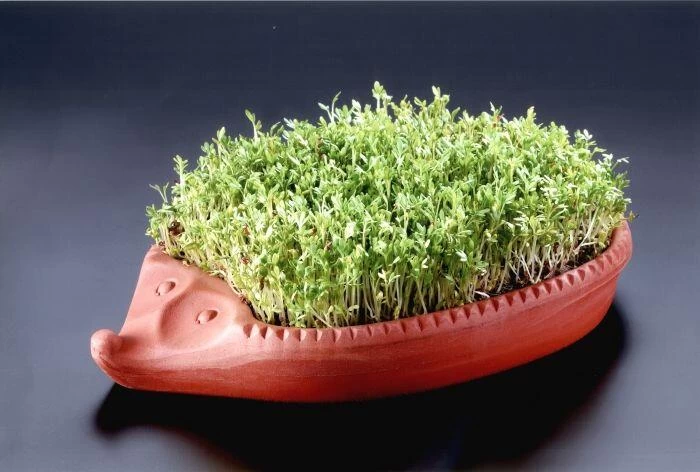 Römertopf Kresseigel ist aus naturreinem Ton und wird komplett mit Kressesamen und Gebrauchsanleitung geliefert.