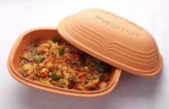 Die Beschaffenheit der Innenwände des Römertopfs macht eine saubere, einfache, und restlose Entnahme der Speisen möglich. Die Innenglasur im Unterteil ist besonders reinigungsfreundlich.