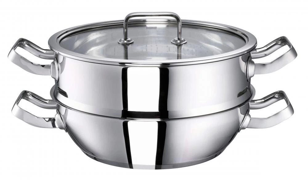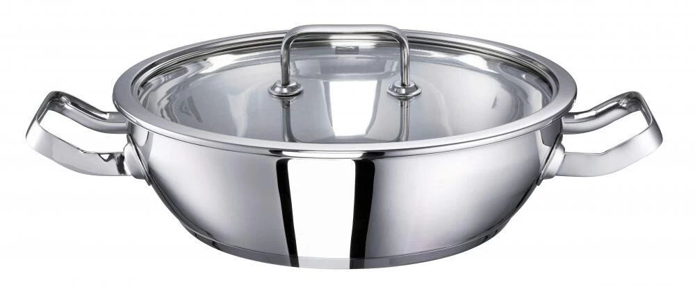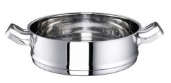 Rohe Schmorpfanne (inkl. Dämpfeinsatz) Conia. Edelstahl-Pfanne, perfekt für Schmorgerichte.