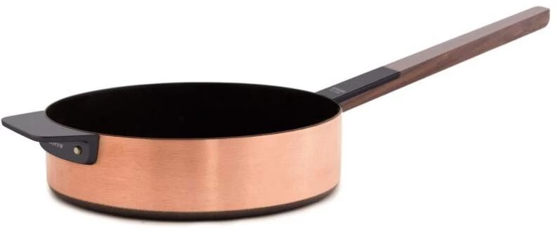 Pfanne aus der Chrom-Noir Linie besitzt einen Stiel aus hochwertigem Nussbaumholz, sie ist aus mattiertem Kupfer und weist einen induktionsfähigen Sandwichboden auf. Die Kupferpfanne besitzt eine natürliche Antihaftbeschichtung und ist für alle Herdarten und den Backofen geeignet.