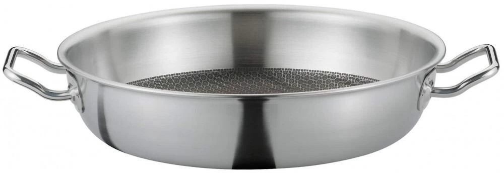 Spring Servierpfanne Vulcano Cut Resist Classic. Dank der besonders robusten Cut Resist Beschichtung lässt sich mit dieser Servierpfanne perfekt am Tisch servieren, sogar bei grobkantigem Werkzeug. Alles ohne einschneidende Erlebnisse!