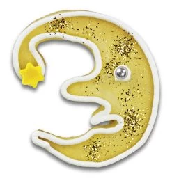 Dieser Mond-Ausstecher hat ein freundliches Gesicht mit besonders langer Nase. Das ist gut, denn so hat mehr Plätzchenteig in der Form Platz.