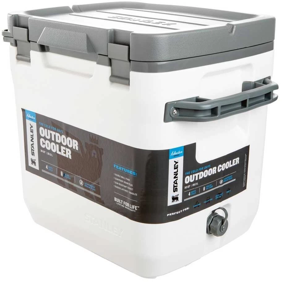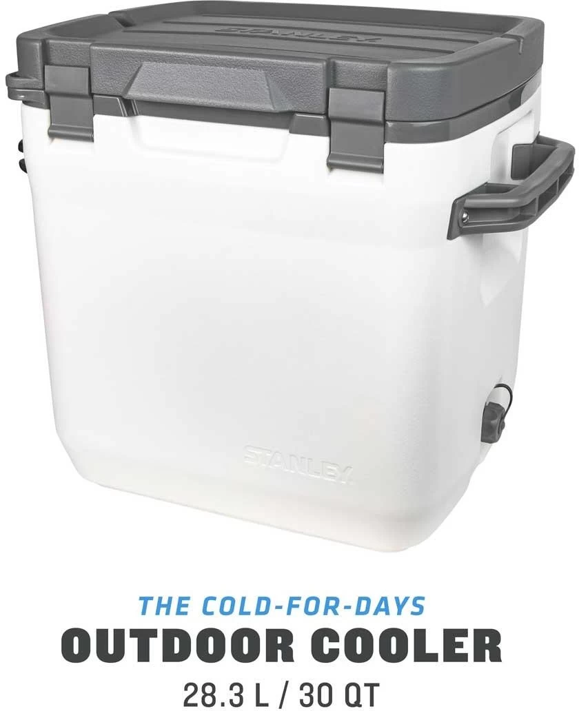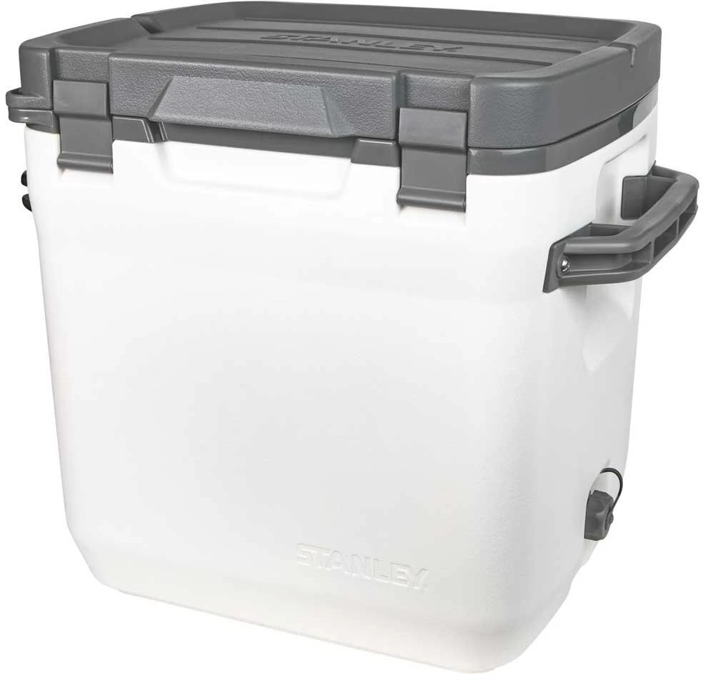 Der große Stanley ADVENTURE OUTDOOR COOLER überzeugt mit einer doppelwandigen Schaum-Isolation und hält den Inhalt bis zu 4 Tagen lang kalt. Die große Variante mit 28,3 Litern Fassungsvermögen ist auch für große 2l-Flaschen geeignet. Besonders stabilen Verschlüsse sorgen, zusammen mit einer Silikondichtung dafür, dass nichts ausläuft. Große Tragegriffe erleichtern den Transport. Der „Cooler“ ist sehr robust und kann auch bequem als Sitz benutzt werden. Die Box besitzt einen auslaufsicheren Ablasshahn.