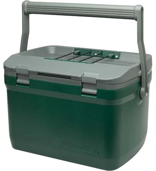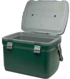 Stanley Kühlbox „Adventure Cooler“, 15,1 Liter. Dieser Stanley „Adventure Cooler“ überzeugt mit einer doppelwandigen Schaum-Isolation und hält den Inhalt bis zu 36 Stunden lang kalt. Die besonders stabilen Verschlüsse sorgen, zusammen mit einer Silikondichtung dafür, dass nichts ausläuft. Auf dem Deckel lässt sich leicht eine Stanley Vakuum Flasche befestigen. Dank des flachen Deckels kann der „Cooler“ auch bequem als Sitz benutzt werden. Alternativ kann auf dem Deckel eine Stanley Vakuum Flasche bis 0,7 Liter untergebracht werden. Der „Cooler“ hat ein Fassungsvermögen von 15,1 Liter.