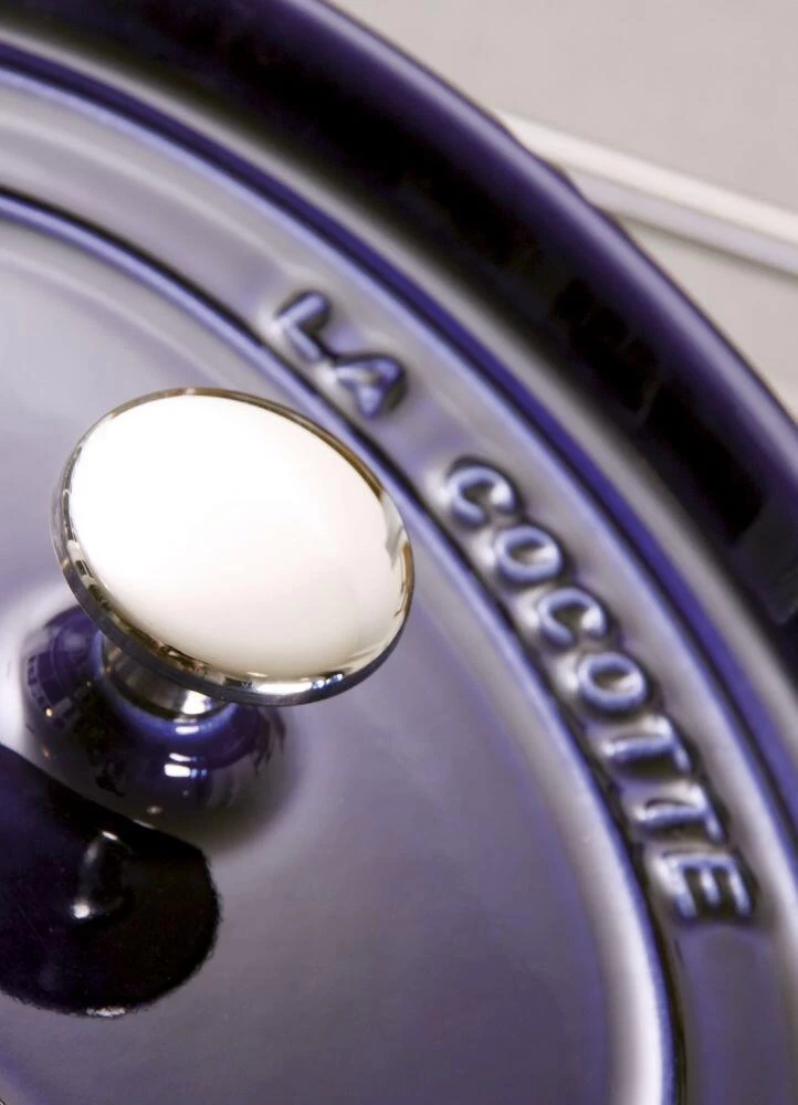 Eigenschaften des Staub Bräter bzw. Cocotte rund aus Gusseisen in dunkelblau: