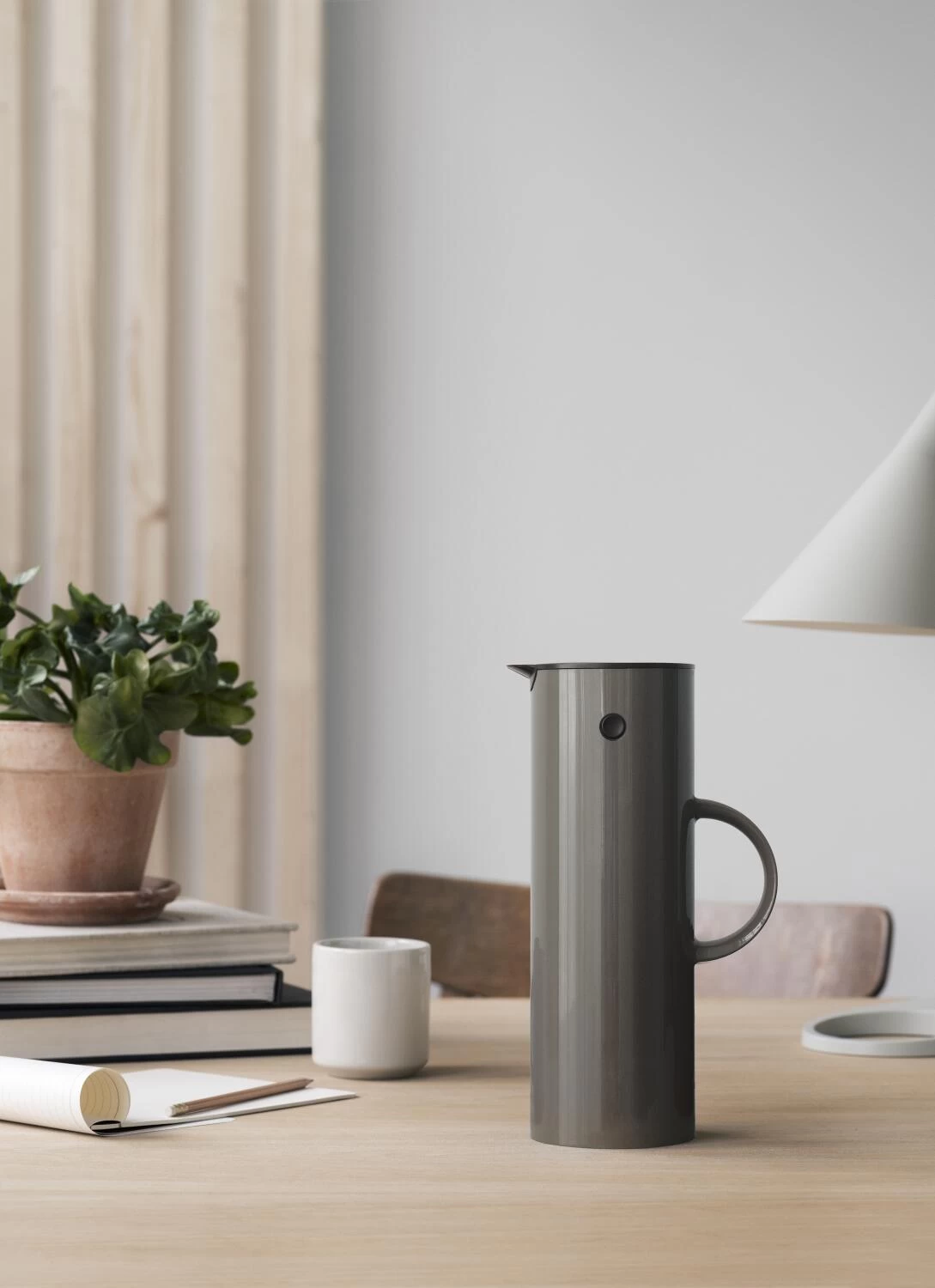 Stelton für einfaches Öffnen und Verschließen. Seit die Kanne 1977 von Erik Magnussen entworfen wurde, erfreut sie sich bei Kaffee-, Tee- und Designliebhabern größter Beliebtheit und ist so über die Jahre zum Klassiker und auch zur Modeikone geworden.