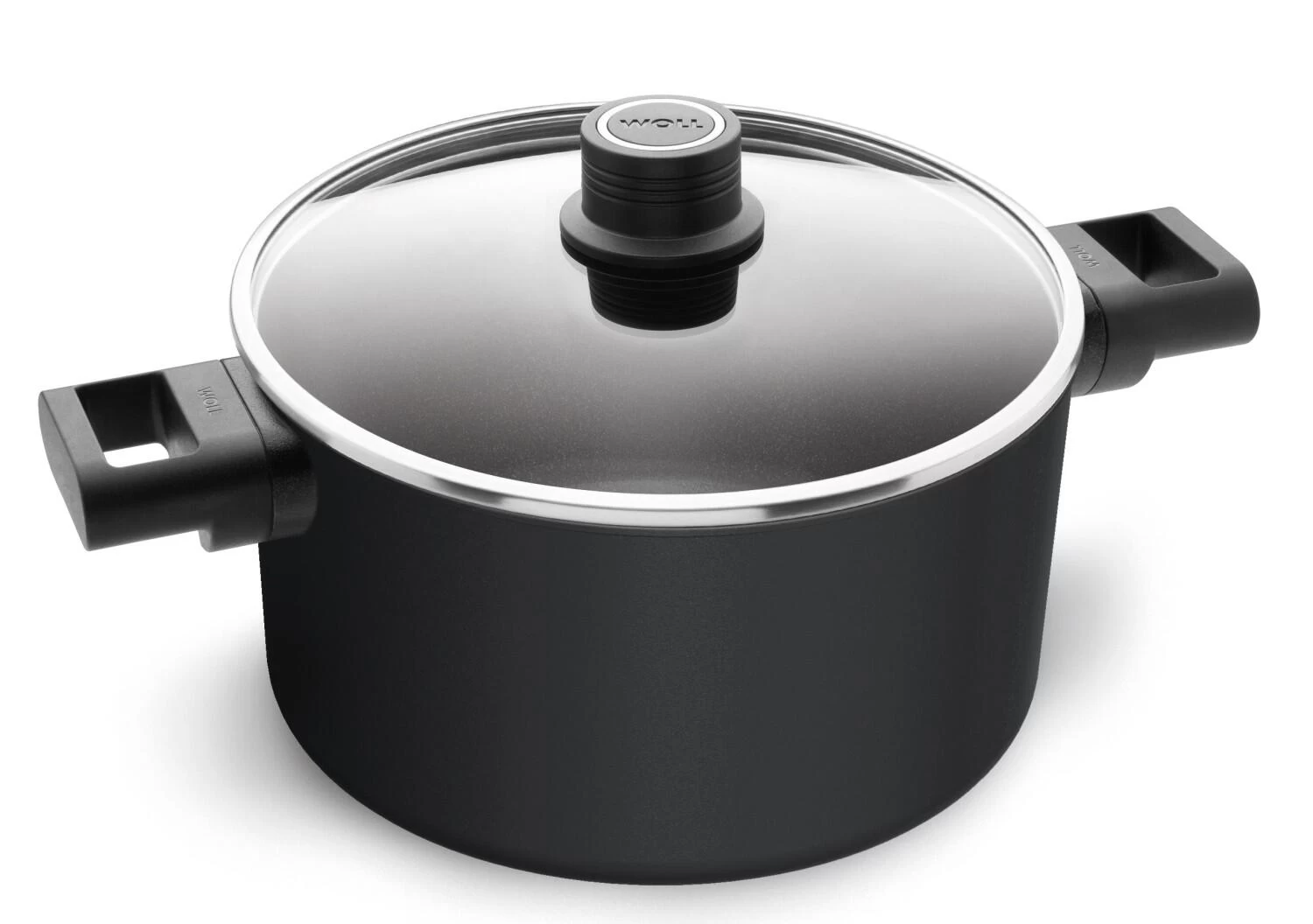 Schlichtes modulares Design, komplett ausgestattet mit festen oder abnehmbaren Phenolic- und Edelstahlgriffen. Die Sicherheitsglasdeckel und Edelstahldeckel mit permanentem Dampfauslassventil sind für alle Größen der Logic Serie erhältlich. Jedes Produkt wird individuell in Deutschland handgefertigt und besitzt die neue außergewöhnliche Diamond XR-Beschichtung.